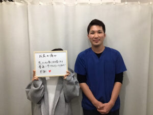 一回目の施術で私のヘルニアになった原因や、ヘルニアは改善することを伝えてもらい、最初は少し不安でしたが言われた通りに通院すると本当に痛みが軽減していき、1ヶ月半ぐらい経った頃から痛みや痺れが3分の1ぐらいになっていました。