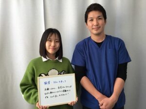 学校の授業中に、周りの姿勢を見ていて自分の姿勢がとても悪いことに気が付き、何とかしたいと思ってこちらの整骨院に来ました。 姿勢が悪くなる原因をしっかりと教えていただき、日々の施術で自分の姿勢が良くなるのを実感できました。 また、家での注意事項やセルフケアを教えていただき日常生活での癖まで改善することが出来ました! 今後も定期的にメンテナンスに来たいと思います。
